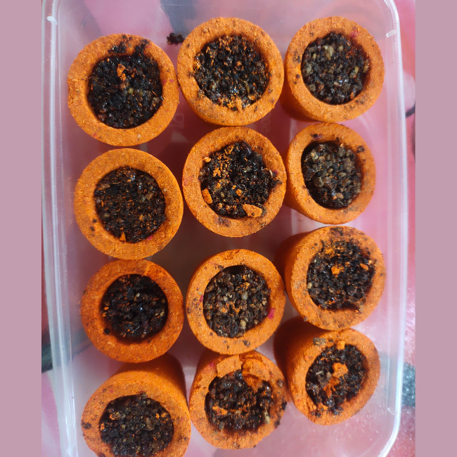 Herbal sambrani is prepared by blending sambrani powder with salt, pepper, mustard seeds, dried chilies, white kunguliyam (benzoin resin), white mustard, and other herbs and aromatic ingredients.